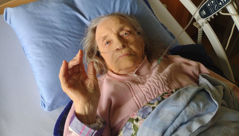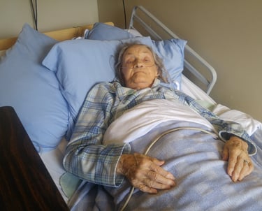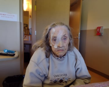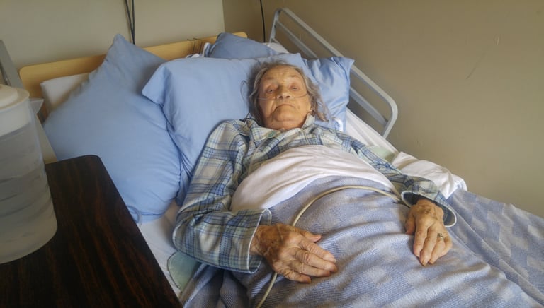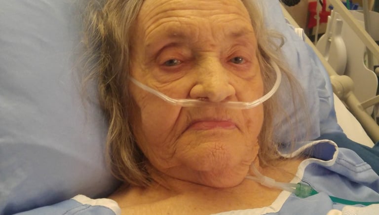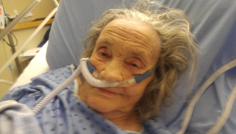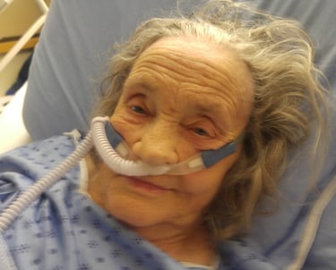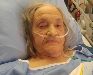 Vernon Hospital, shortly after kidney, heart and lung failure. That's 50+L of Oxygen up her nose vs her "normal" 2L. But that smile has got to be shared.